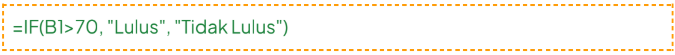 Untuk memberikan nilai”Lulus”jika angka di cell B1 lebih besar dari 70, gunakan rumus: